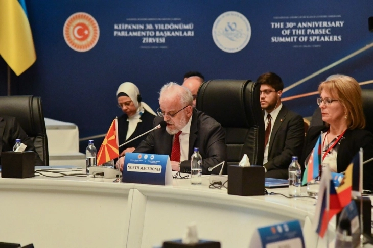 “Maqedonia e Veriut, si anëtare e kësaj organizate, kontribuon në vizionin e përbashkët për inkurajimin e bashkëpunimit ekonomik, stabilitetit politik dhe këmbimit kulturor. E treguam përkushtimin tonë ndaj bashkëpunimit rajonal dhe ndërkombëtar. Vendi ynë bëri përparim të konsiderueshëm në përforcimin e institucioneve të veta, në përforcimin e ekonomisë dhe promovimin e vlerave të demokracisë, të drejtave të njeriut dhe sundimit të drejtës. Ne besojmë se anëtarësimi ynë në PABSEK, jo vetëm që është në dobinë tonë, por kontribuon edhe në zhvillimin dhe rritjen e përgjithshme të rajonit të Detit të Zi. Si anëtare e PABSEK-ut, Maqedonia e Veriut obligohet se do të marrë pjesë në mënyrë aktive në nismat e organizatës dhe do të punojë në drejtim të realizimit të qëllimeve të saj. Ne kemi shumë dëshirë të kontribuojmë në zhvillimin e projekteve rajonale dhe të ndajmë ekspertizën dhe përvojën tonë”, theksoi kryetari i Kuvendit.