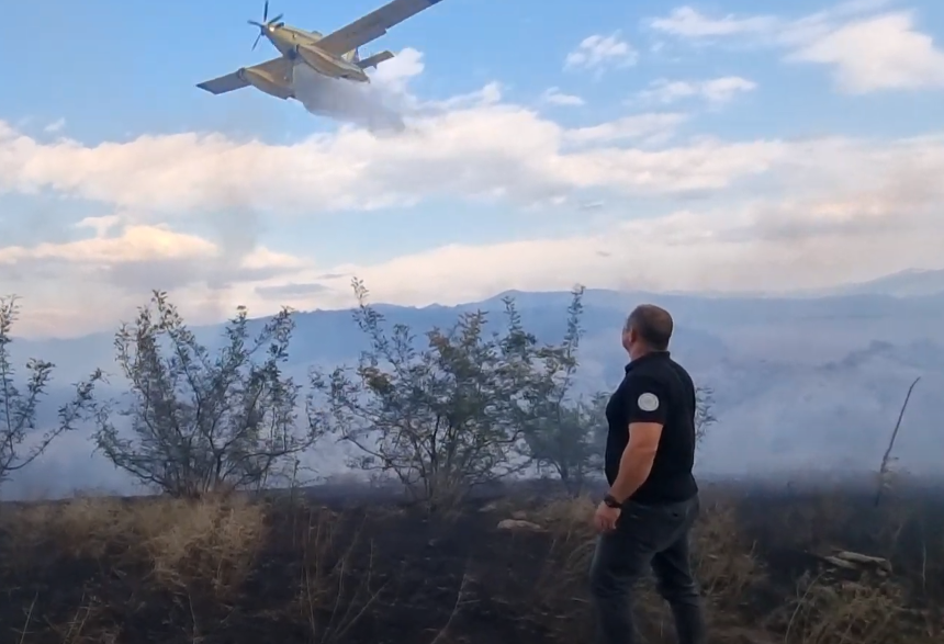 Momenti kur avioni lëshon ujin për të shuar zjarrin e bën “qull” Angellovin (VIDEO)