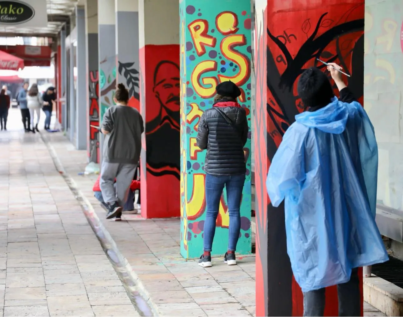 Nxënësit e Çairit në bashkëpunim me arsimtarët e artit kanë filluar t’i ngjyrosin muret në pjesën e poshtme të Sheshit Skënderbeu.