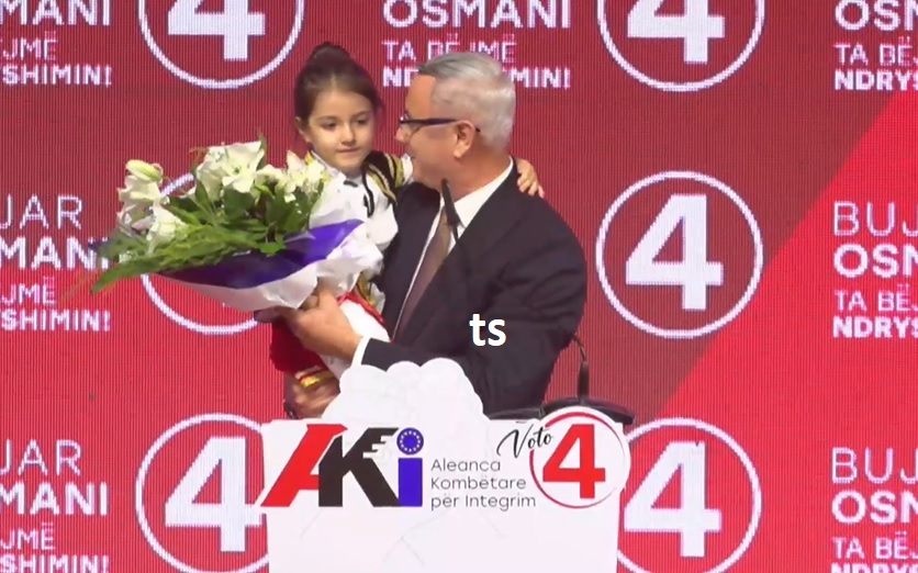 Një moment i papritur dhe prekës ndodhi në skenën e tubimit të Aleancës Kombëtare për Integrim (AKI) në Çair.