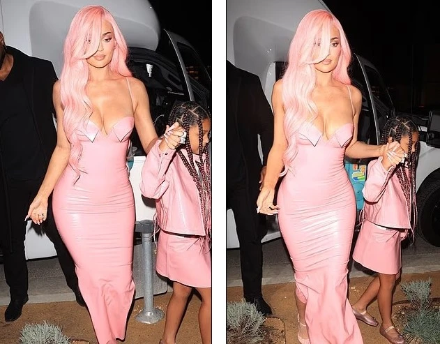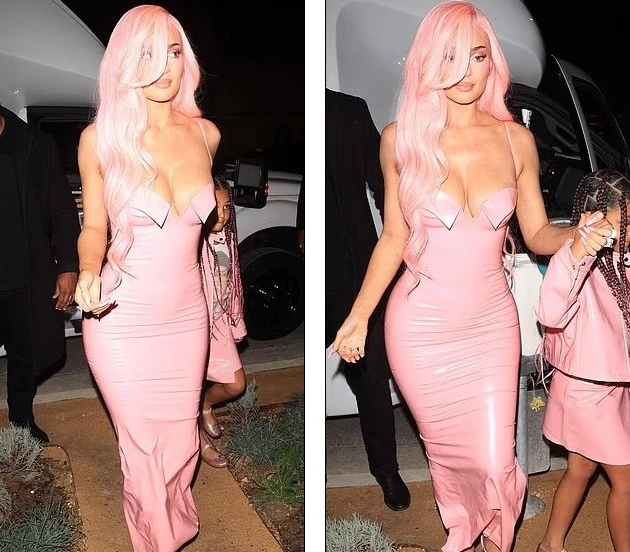 Kylie Jenner shkëlqen e veshur me një fustan latex ngjyrë rozë, ndërsa thekson linjat trupore