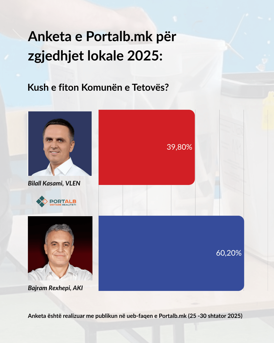 Rezultatet e anketës së Portalb: Kush e fiton Komunën e Tetovës në zgjedhjet lokale 2025?