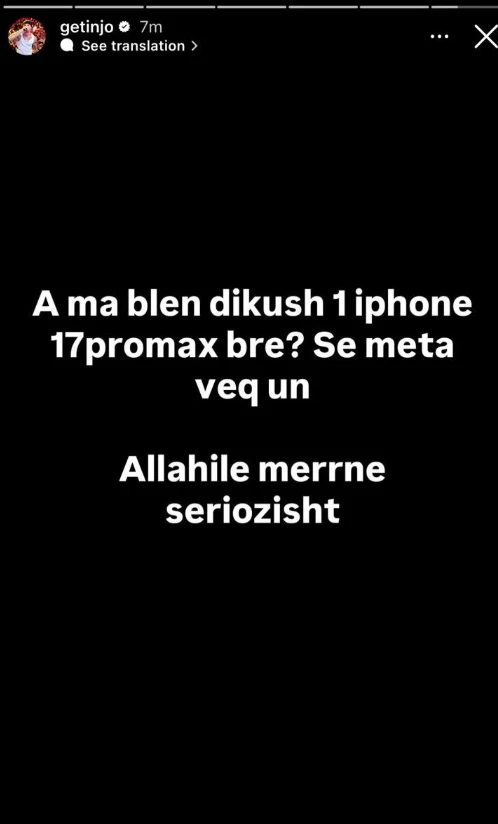 Ai ka postuar një shkrim në InstaStory, ku ia kërkon ndjekësve një Iphone 17 Pro Max.