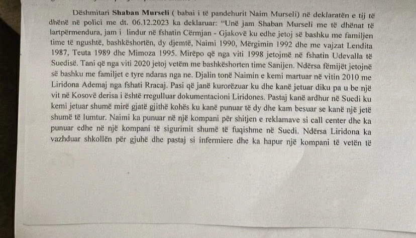Deklarata ishte dhënë nga Shaban Murseli në polici më 6 dhjetor 2023.