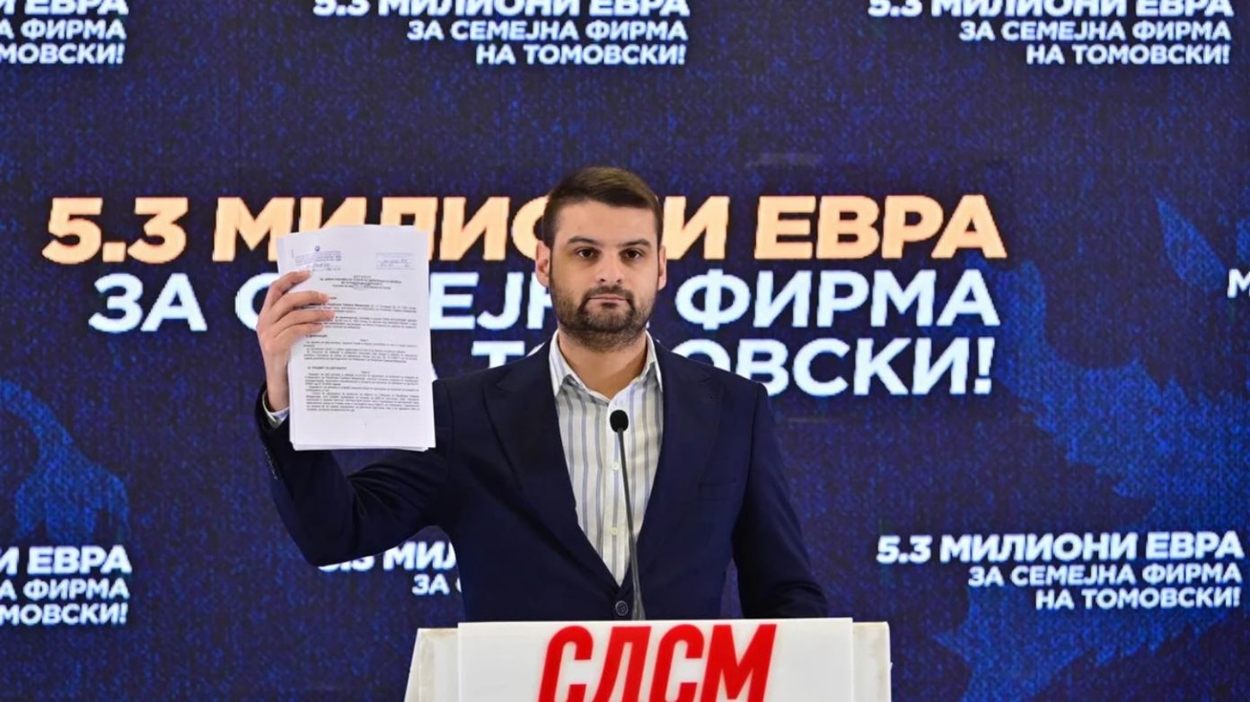 Sipas LSDM-së, Tomovski dhe familja e tij kanë përfituar mbi 5 milionë euro nga qeveria përmes shërbimeve që ofrojnë, dhe kjo sipas opozitës është bërë në mënyrë jo të rregullt.
