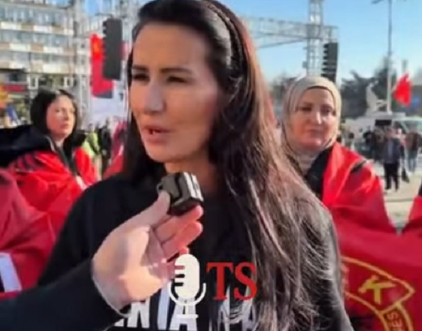 Ish Ushtarja e Ushtrisë Çlirimtare të Kosovës, Shkodrane Dardhishta ka dhënë mesazh të fuqishëm nga sheshi Skendërbe në Shkup, raporton TS.
