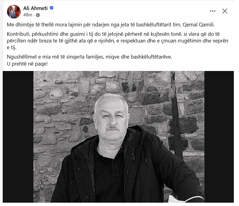 “Me dhimbje të thellë mora lajmin për ndarjen nga jeta të bashkëluftëtarit tim, Qemal Qamili.