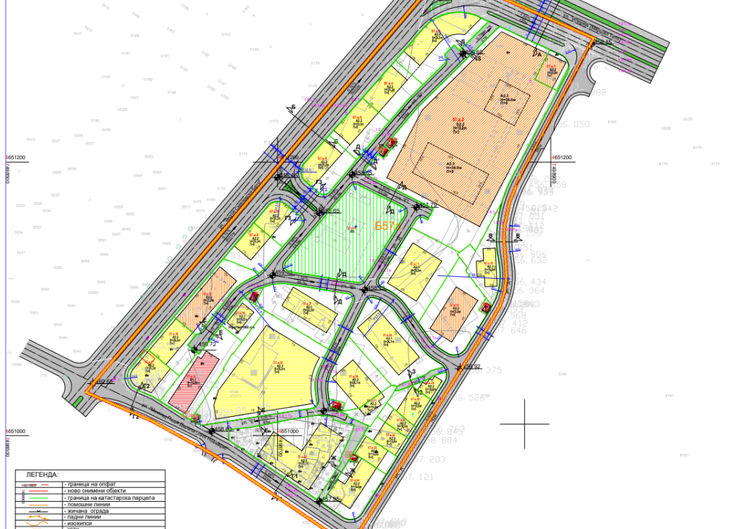 Në kuadër të planit janë formuar 36 parcela ndërtimore, ndërsa sipërfaqja maksimale për ndërtim në nivel blloku është 219.108 metra katrorë: banim 157.406 m², objekte afariste 60.251 m², veprimtari publike 1.315 m² dhe infrastrukturë 135 m².