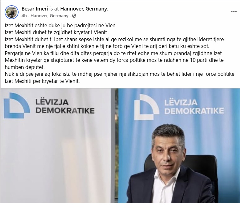 Ndërkohë, në rrjetet sociale kanë nisur thirrje të shumta për zgjedhjen e një lideri të VLEN-it. Shumë profile dhe aktivistë të ndryshëm kërkojnë që Izet Mexhiti të jetë kryetar i kësaj force politike. Në reagime të publikuara online, theksohet se Mexhitit po i bëhet padrejtësi, duke vlerësuar se ai ka marrë rrezikun më të madh politik për krijimin dhe forcimin e VLEN-it.